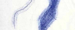 J’ai pu montrer la vidéo ( 3,5 minutes) réalisée l’été dernier à Jarrier . Traitée en bicolore (rose et jaune), elle reprend de courts extraits au ralenti dans les champs de fleurs et d’autres extraits enregistrés en ville ces dernières années. Je souhaitais juxtaposer ces moments afin de montrer d’une part l’extase face au foisonnement de la nature dans ces champs vide de pollution, et d’autre part en souligner le caractère fragile, éphémère. Le son renforce cette dichotomie. En effet, à peine la vidéo commencée (une vision idyllique d’un champs de fleurs), un son brutal et fugace intervient, accompagné d’images comme une centrifugeuse ( il s’agit en fait de balais de lavage automobile en station).