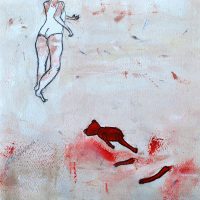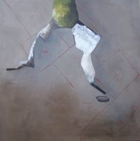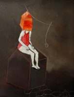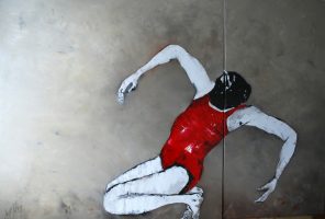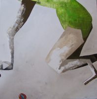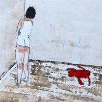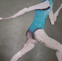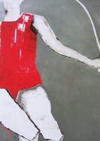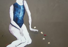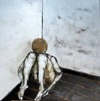 « L’appartement » est un travail de peinture sur toile de divers formats, où la figure (non identifiable) et l’espace d’habitation sont représentés de manière sommaire. Les contours de la toile ou les lignes qu’elle y définit, délimitent un lieu cloisonné, enfermant tel un coin pièce, un bout de sol, un mur dans et sur lequel Nathalie Leverger vient placer un personnage, coincé entre quatre murs. La figure souvent féminine (femme ou petite fille) fait appel pour l’artiste à l’enfance certes mais aussi au besoin de tout homme de trouver sa place, quête de toute une existence sans certitude de réponse. Prise dans le souvenir, une situation, la série « l’appartement » n’a pas de décor en dehors d’une projection donnée par le titre. Nous n’y verrons pas de table, de lit, de photo, de lampe, de chaise … Non, rien de tout cela !
