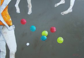 Le theme des jeux de cour d’école a été imaginé alors que mes enfants étaient en âge d’aller à l’école primaire. Dans cette série cependant , je n’ai pas cherché à décrire leur univers d’écoliers, mais plutôt de faire remonter une certaine nostalgie du passé, lié parfois à des jeux oubliés.