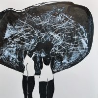 Dans le même temps , un travail huile et encre sur papier toilé sur le thème « la nuit tous les chats… » , pour une exposition à Nantes sur proposition d’hélène et Dominique Poisot (ARTEVA).