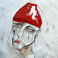 Bien que chaque œuvre semble raconter une histoire, Nathalie Leverger choisit de laisser une part de mystère. Dans son tableau « Tears », le personnage assis sur une chaise invite des interprétations multiples, soulignant une identité non genrée qui ouvre la voie à une appropriation variée. Cette approche engage le spectateur à s’investir émotionnellement, à remplir les vides laissés par l’artiste avec ses propres narratives.